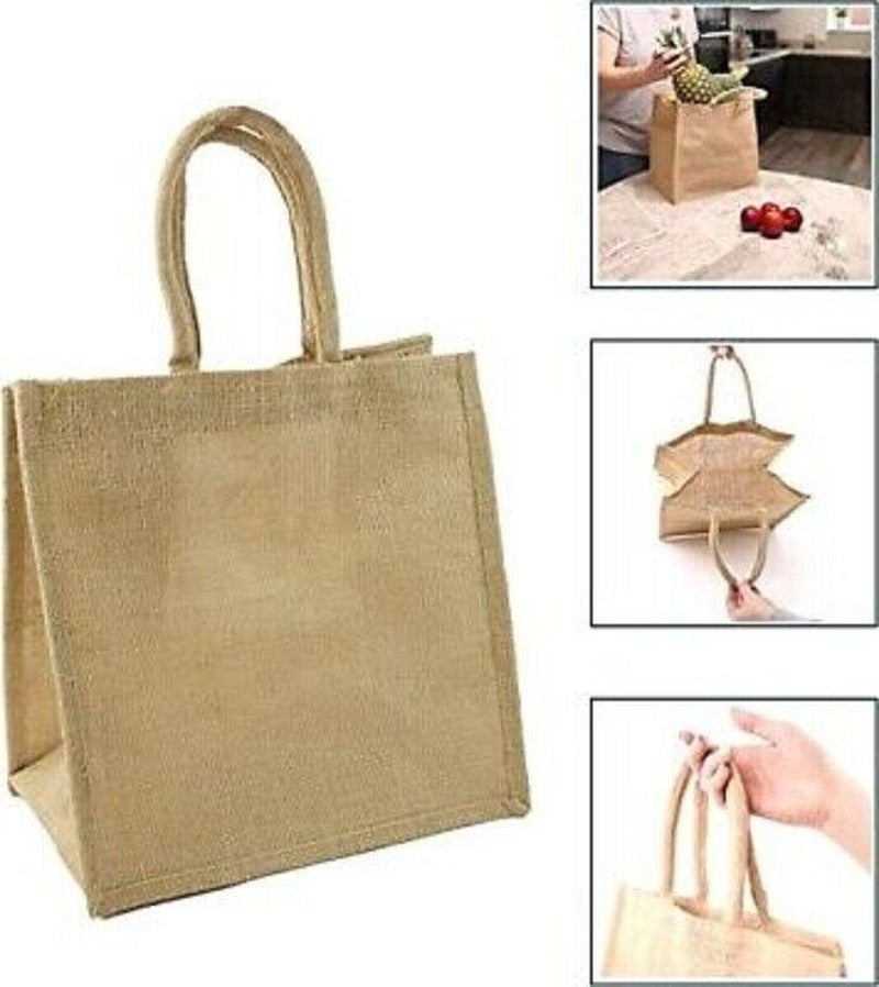 Jute Shopper Bag with Handles Reusable Tote Shopping Good Quality Pack of 10